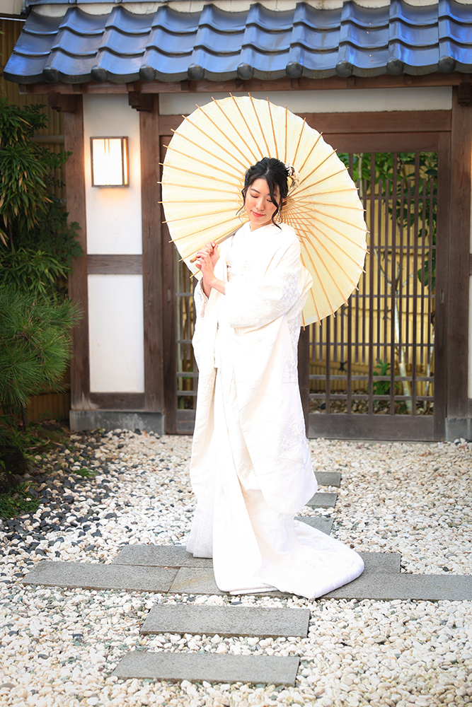 2025/09/11 「スタッフの方が優しく」 ブログ 松戸店 松戸市のフォトスタジオ「ウェディングストーリー松戸店」にて、和洋装ソロウェディングスタジオプランをご利用されたお客様のお写真です。 衣装合わせでは、全面に扇の刺繍が施された白無垢を選ばれました。 日本庭園スタジオで、和傘を肩に、ポーズが素敵なフォトショットです。 撮影後、写真の仕上がりをスライドショーでご覧いただいた主役様は、「スタッフの方が優しく、あまり緊張しないで 撮影にのぞめました」とご満足のお言葉を下さいました。 Photo by Matsudo 該当店舗 松戸店