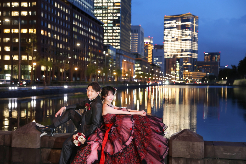 東京駅近くの夜景でお撮りしたお二人の素敵なポートレートです。